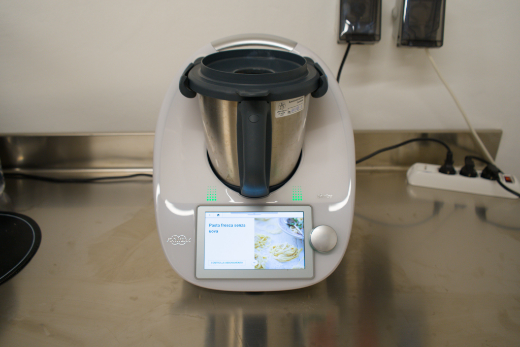 Il Vorwerk Bimby è un elettrodomestico multifunzione che integra in un unico dispositivo compatto cottura, miscelazione, tritatura e controllo preciso della temperatura. All’interno del Kitchen Lab viene utilizzato per sperimentare nel campo del food design, della ricerca sui materiali e dell’innovazione sensoriale, consentendo di gestire con precisione texture, temperature e processi di preparazione.